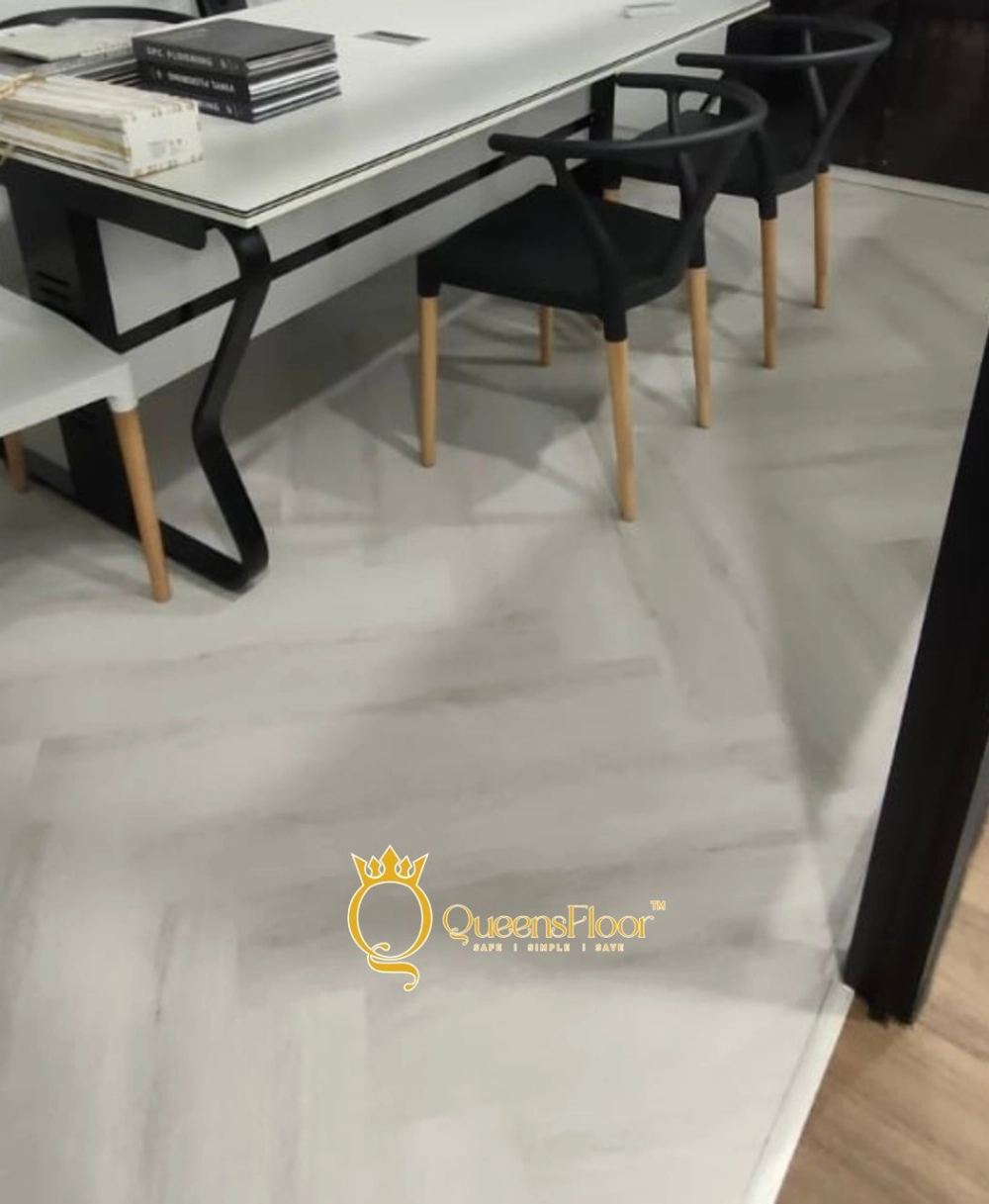 Ideal for commercial interiors and cozy residential spaces, QueensFloor’s LVT options include classic and herringbone designs, along with waterproof surfaces that are perfect for wet zones like bathrooms and kitchens.